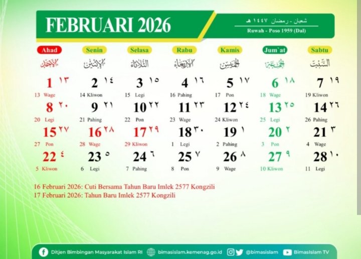 Berikut ini akan diulas kalender Jawa hari ini, Senin 16 Februari 2026, lengkap pasaran, weton, dan watak hari menurut perhitungan tradisional Jawa.