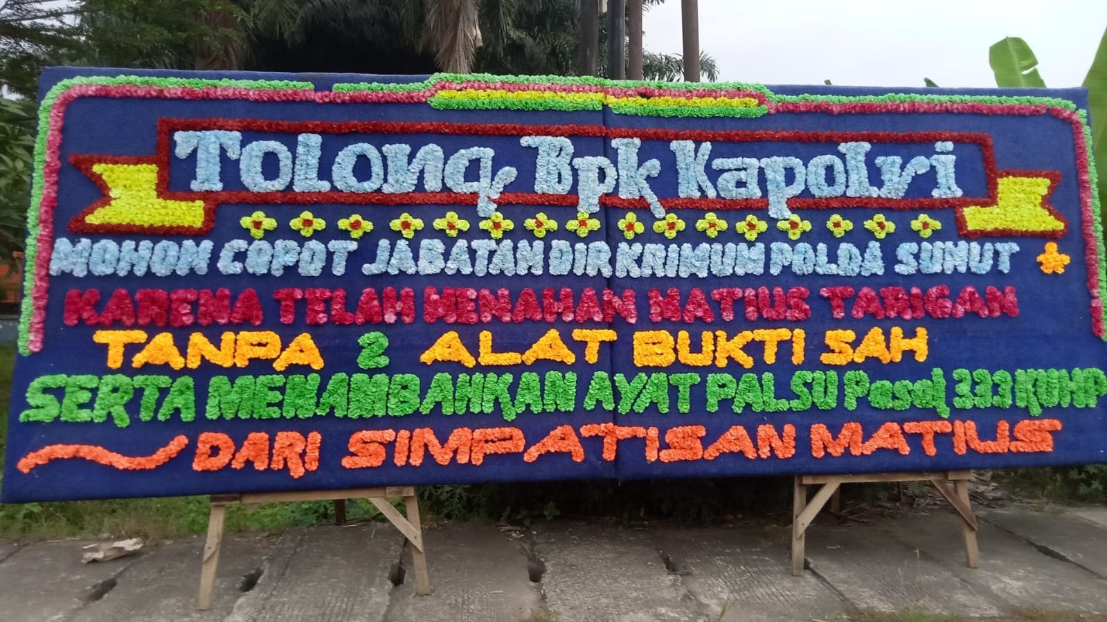 Ditempat terpisah, puluhan mamak-mamak yang merupakan keluarga dari Matius Tarigan mendatangi Mapolda Sumut sembari memasang papan bunga dipinggir jalan besar. Bukan kali ini saja keluarga besar dari Matius Tarigan sudah pernah mendatangi gedung Propam dam Ditreskrimum Polda Sumut, bahkan sudah ada yang sempat tidur-tiduran di depan gedung karena meminta kejelasan terkait penangkapan Matius Tarigan, namun tidak ada yang bisa memberikan penjelasan. (roy)