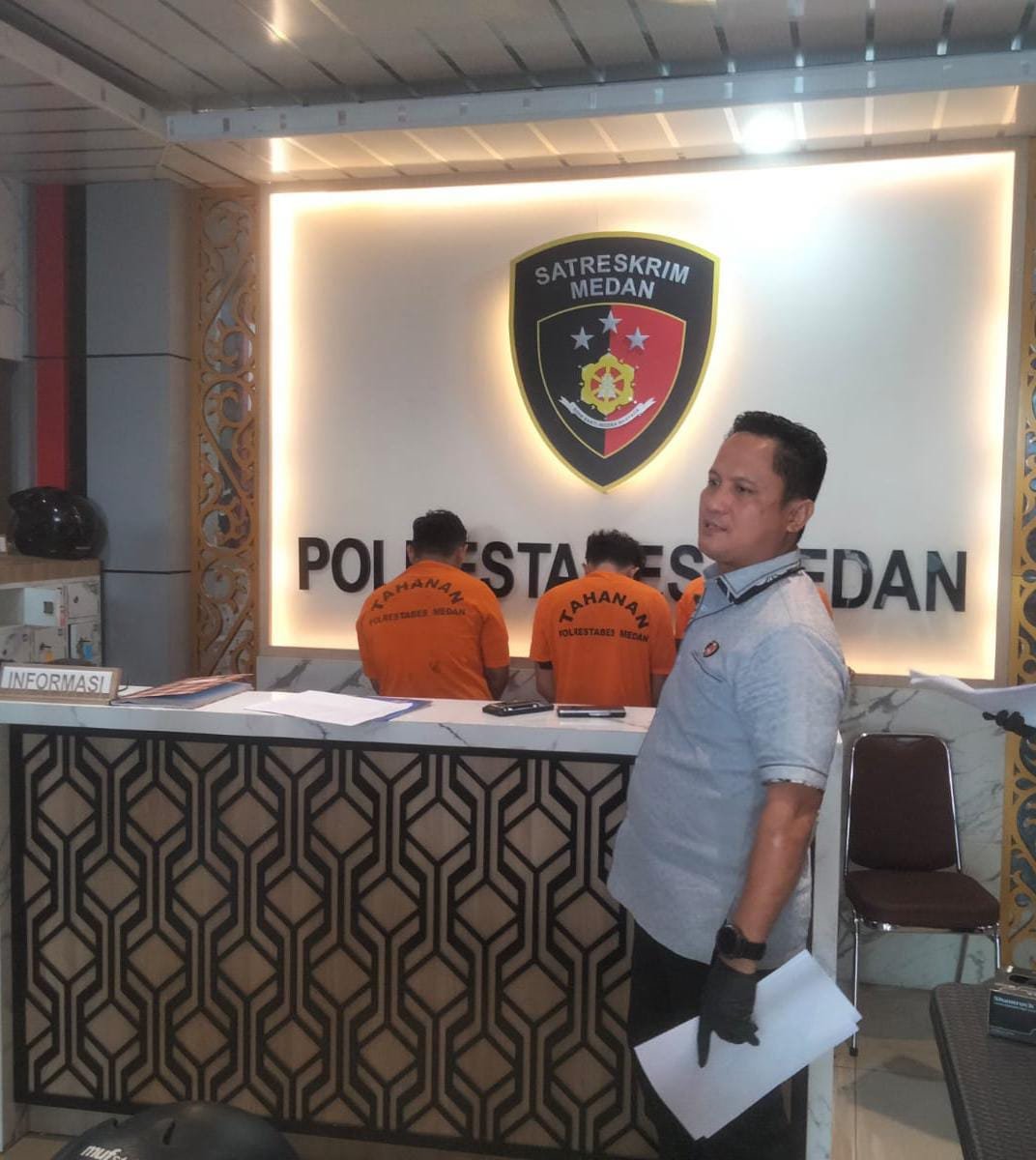 Ketiga pelaku saat dipaparkan di Sat Reskrim Polrestabes Medan.(Foto : Ist)