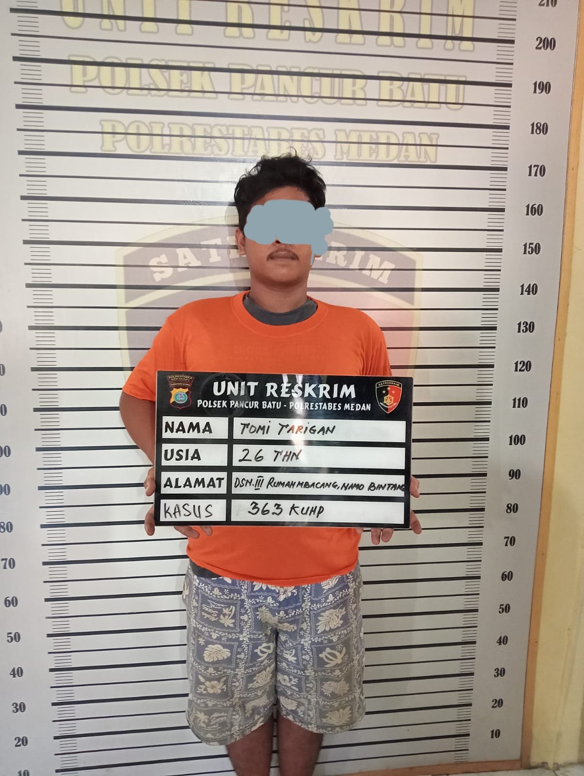 Dari penyelidikan dan olah tempat kejadian diduga keras yang melakukan pencurian itu adalah tersangka dan petugas dipimpin Panit Luar IPDA Maruli Sihotang