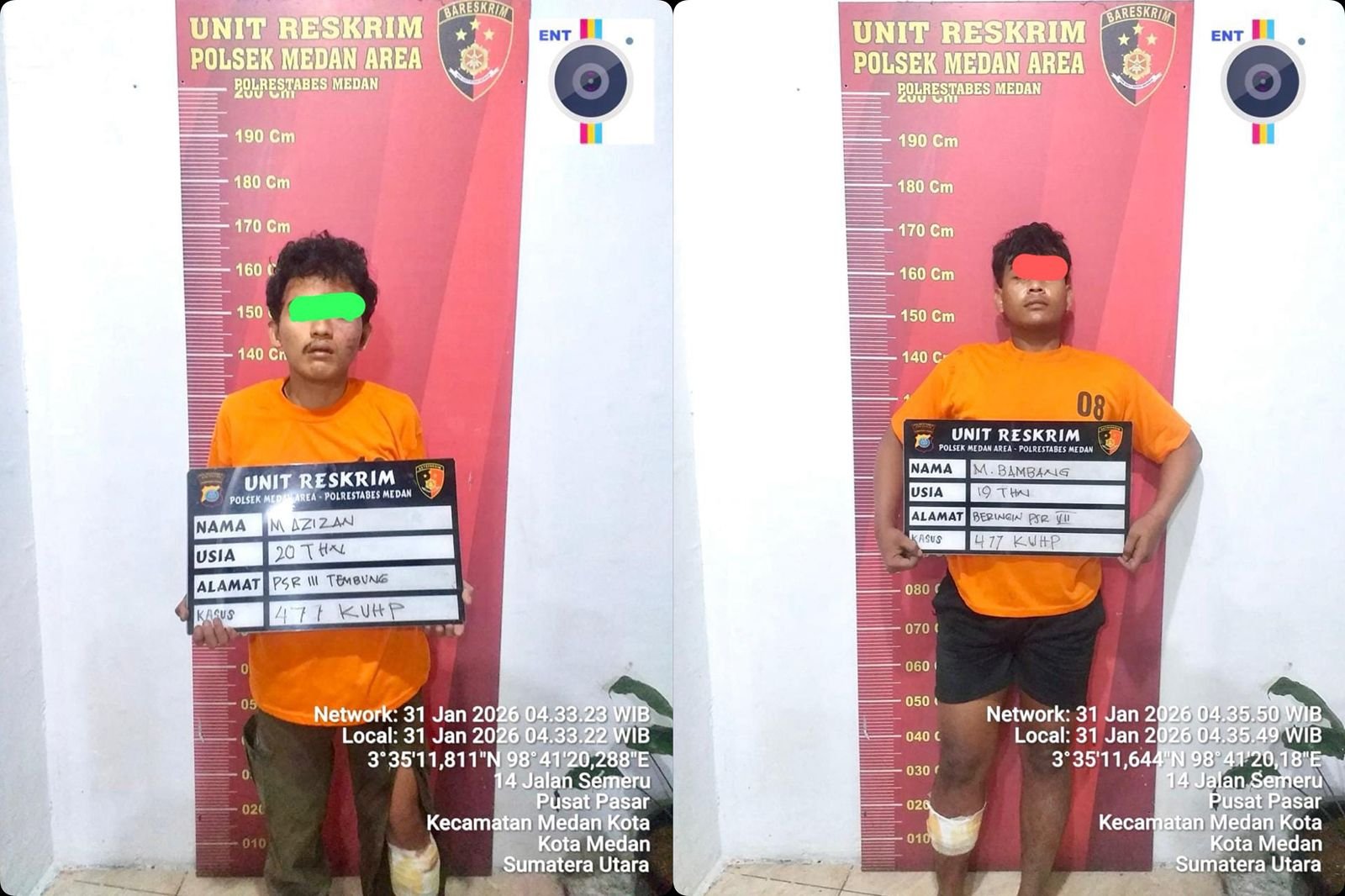Keduanya adalah, M Bambang Hermanto (19), warga Beringin Pasar 7 Desa Tembung Kecamatan Percut Seituan dan M Azizan (20), warga Jalan Datuk Kabu, Tembung, Percut Seituan.