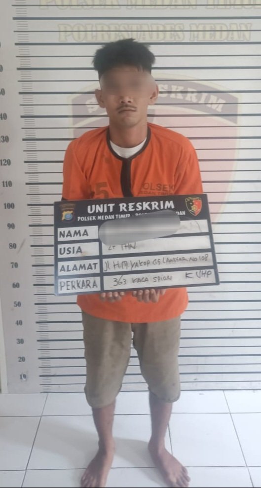 Tersangka diamankan berdasarkan laporan Polisi Nomor LP/B/406/VIII/2025/SPKT/Polsek Medan Timur tanggal 15 Agustus 2025 atas nama Lukas Serafein Barus.(23) Warga Jalan Dondong No. 5 A Medan Belawan Kota Medan.