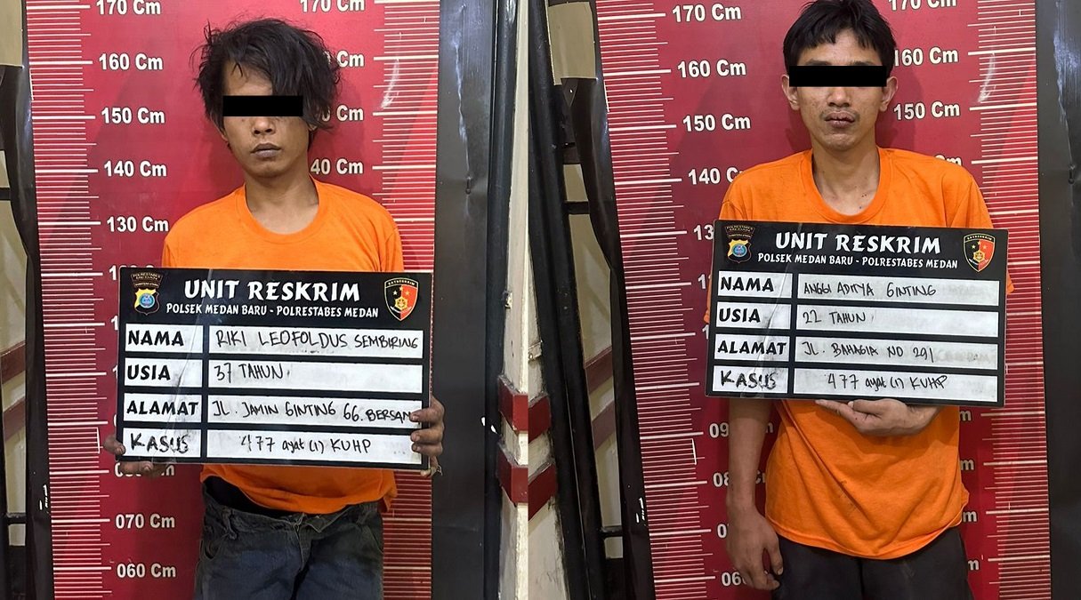 Kedua pelaku masing-masing bernama Riki Leofoldus Sembiring (37), warga Jalan Jamin Ginting Gang Bersama No. 24, Kelurahan Titi Rante, Kecamatan Medan Baru, dan Anggi Aditya Ginting (22), warga Jalan Bahagia No. 291, Kota Medan.