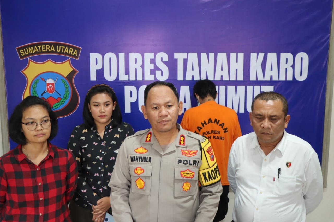 “J sudah kita amankan kemarin, Senin(6/11) di rumahnya, yang mana sebelumnya J sempat melarikan diri ke Medan setelah kejadian tersebut, hingga akhinya UPPA berhasil menangkap pelaku di rumahnya”, jelas Kapolres Tanah Karo AKBP Wahyudi Rahman, S.H, S.I.K, M.M, CPHR, CBA, didampingi PLT. Kasat Reskrim AKP Hendry Tobing, S.H dan Kanit PPA Ipda Sri Wahyuni, di Mapolres Tanah Karo.