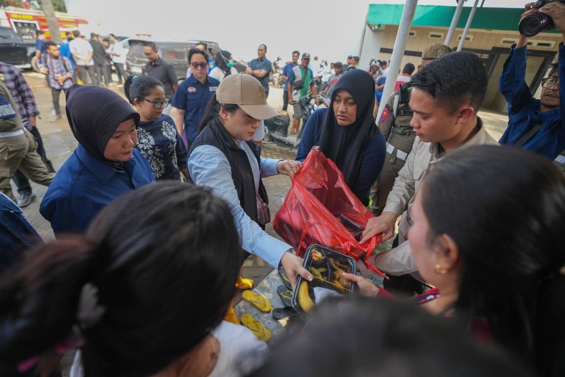 Tidak hanya meninjau pembersihan Masjid, kehadiran Rico Waas bersama dengan Airin Rico Waas juga turut menyerahkan bantuan kepada warga. Adapun bantuan yang diberikan berupa makanan, beras, telur, gula, biskuit, air minum dalam kemasan dan pampers.