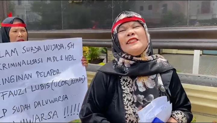 Ditetapkan Tersangka, Emak-emak Berdemo di Depan Polrestatabes Medan