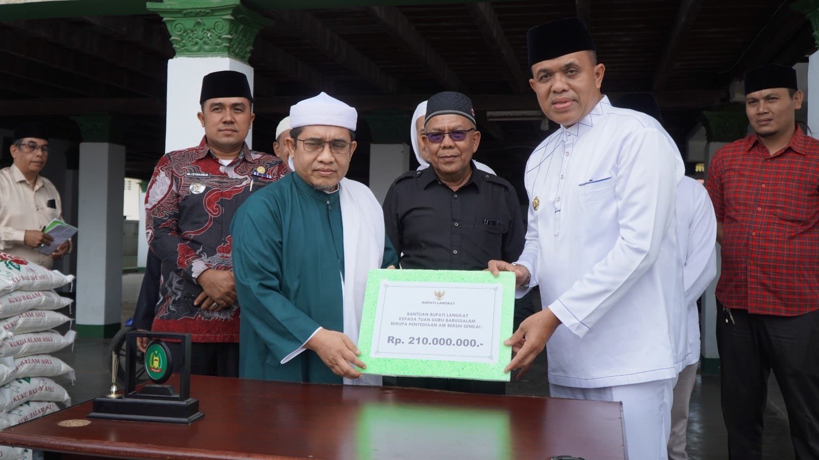 Bantuan yang diberikan oleh Pemkab Langkat berupa 3 ekor lembu, 2 ton beras, 100 pcs minyak makan, dan 100 dus air mineral. Selain itu, Pemkab Langkat juga menyerahkan bantuan air bersih senilai Rp210 juta. Bantuan ini diserahkan langsung oleh Pj Bupati kepada Tuan Guru Babussalam, Syekh DR. Zikmal Fuad, MA.
