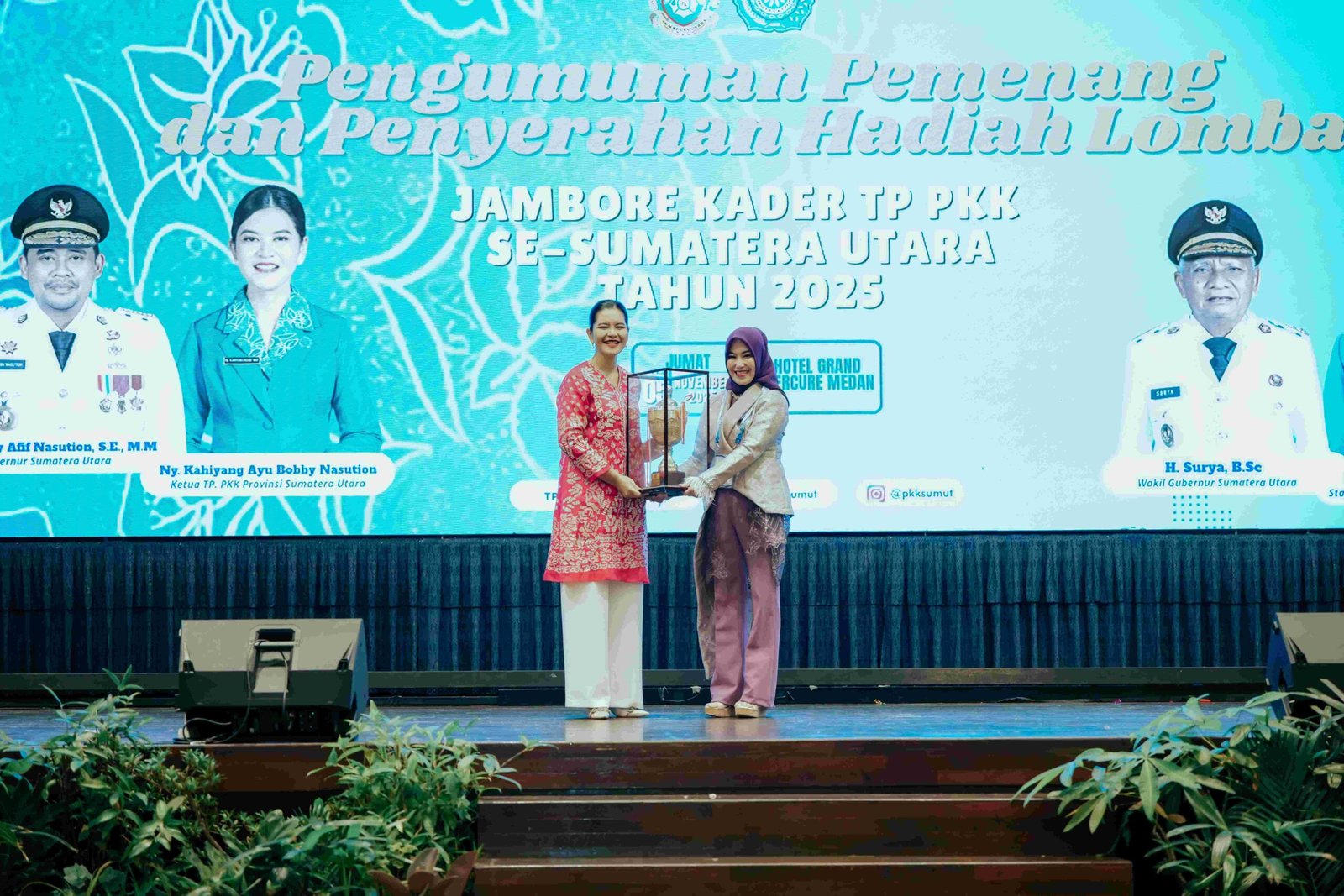 Pada kesempatan tersebut, Kota Tanjungbalai berhasil meraih Juara Umum Jambore Kader PKK Sumut 2025. Piala bergilir diserahkan langsung oleh Kahiyang Ayu kepada Ketua TP PKK Kota Tanjungbalai, Mashandayani Mahyaruddin Salim.