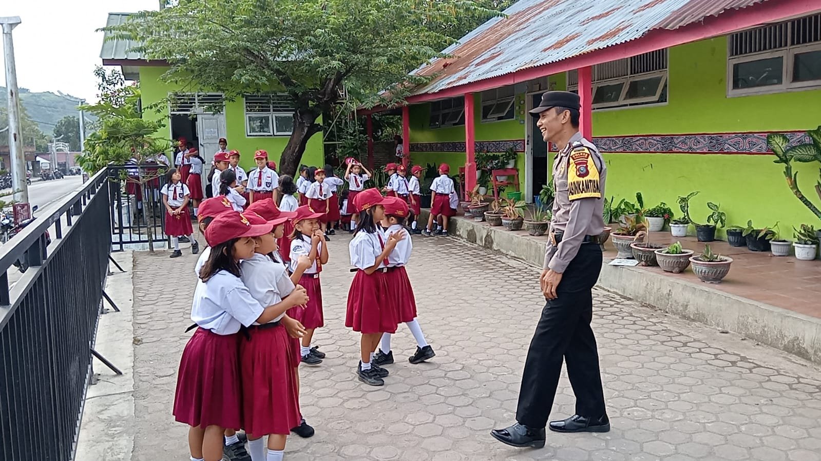SAMOSIR (HARIANSTAR.COM) – Polsek Simanindo melalui Bripka Agus Sutopo, Personil Bhabinkamtibmas, berinisiatif menyapa para pelajar di SD Negeri 15 Ambarita Simanindo Samosir.