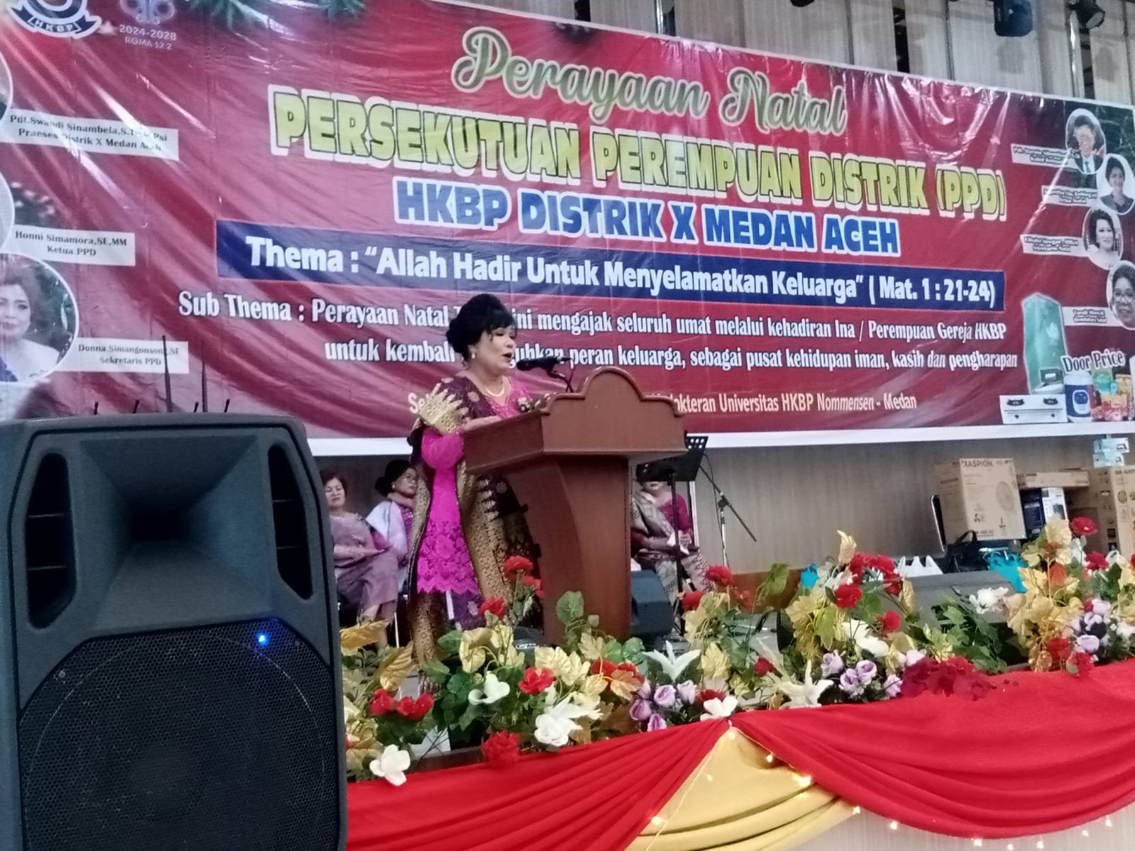 MEDAN (HARIANSTAR.COM) – Perayaan Natal Persekutuan Parompuan Distrik (PPD) HKBP Distrik X Medan Aceh, berlangsung meriah dan penuh sukacita, pada Selasa, 2 Desember 2025 di Gedung Aula Fakultas Kedokteran Universitas HKBP NOMENSEN MEDAN dimulai sejak pukul 16.00 Wib sampai dengan selesai.
