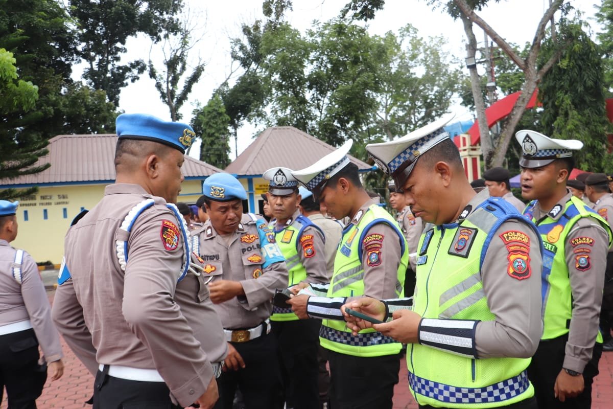 Pemeriksaan meliputi pengecekan sikap tampang personel serta kelengkapan administrasi pribadi, seperti Kartu Tanda Anggota (KTA), Surat Izin Mengemudi (SIM), dan Surat Tanda Nomor Kendaraan (STNK), termasuk masa berlaku dari masing-masing dokumen.