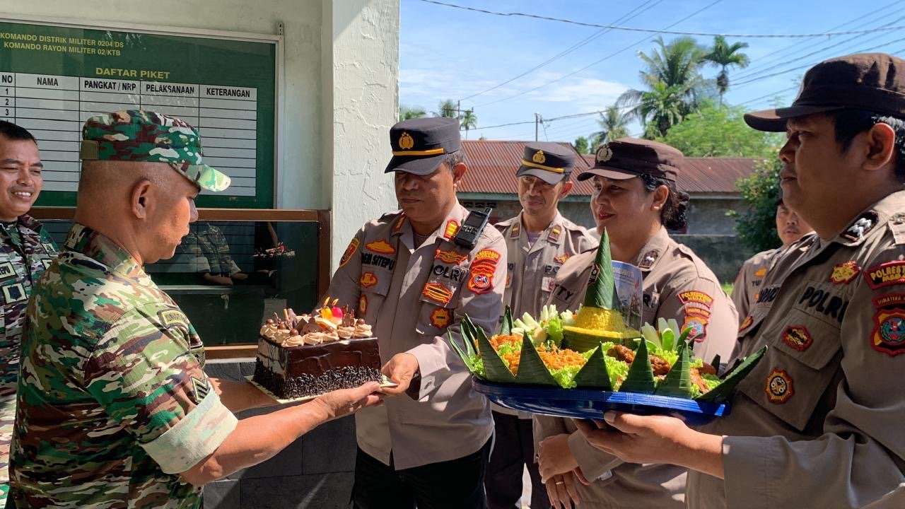 Acara berlangsung penuh keakraban dan kebersamaan. Dalam kesempatan itu, Kapolsek Kutalimbaru bersama jajaran membawa kue tart dan nasi tumpeng sebagai simbol perayaan dan wujud sinergitas antara TNI-Polri di wilayah Kutalimbaru.