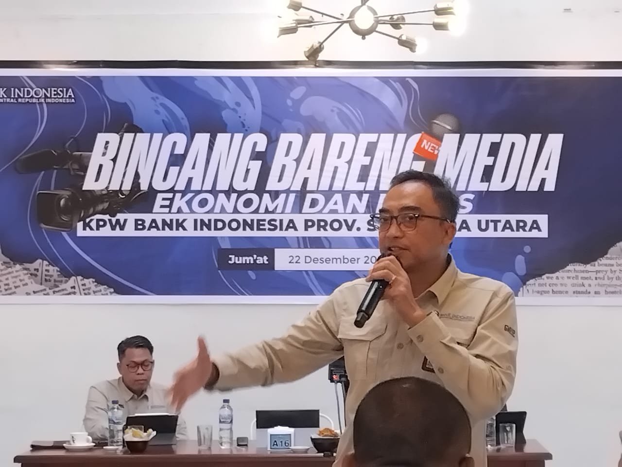 Demikian disampaikan Kepala Kpw BI Provinsi Sumut, IGP Wira Kusuma saat memberikan penjelasannya kepada para awak media pada Bincang Bareng Media (BBM) yang digelar di salahsatu rumah makan di Kota Medan, Provinsi Sumut, Jumat (22/12/2023) pagi.