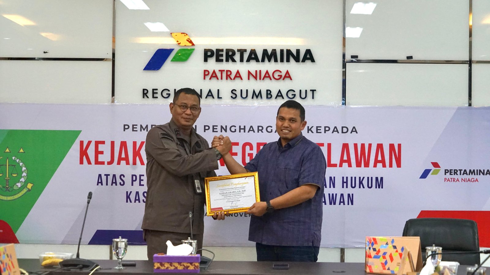 Penghargaan tersebut diberikan langsung oleh Executive General Manager Pertamina Patra Niaga Regional Sumbagut, Freddy Anwar kepada Kepala Kejaksaan Negeri Belawan, Samiaji Zakaria di Kantor Pertamina Patra Niaga Regional Sumbagut, Medan, Kamis (21/11).