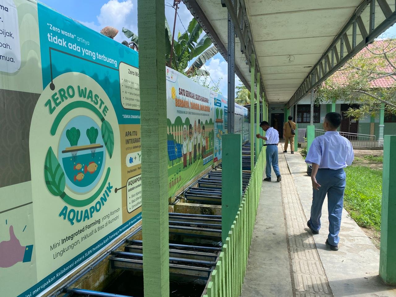 Di belakang sekolah, Program SEB juga menghadirkan aquaponik, sistem terpadu antara budidaya ikan dan tanaman sayur. Kolam ikan berjajar rapi di antara rak-rak sayuran hijau, menghadirkan ruang belajar baru tentang pangan berkelanjutan.
