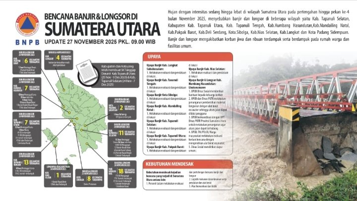 Penanganannya menjadi fokus pembahasan dalam Rapat Tingkat Menteri (RTM) yang diinisiasi oleh Badan Nasional Penanggulangan Bencana (BNPB) bersama Kementerian Koordinator Bidang Pembangunan Manusia dan Kebudayaan (Kemenko PMK) serta unsur kementerian/lembaga terkait. Rapat berlangsung secara hybrid dari Ruang Pusat Pengendali dan Operasi (Pusdalops) BNPB, Jakarta Timur, pada Kamis (27/11/2025).