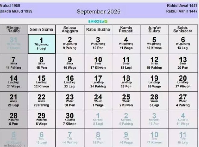 Untuk ulasan kali ini kita akan membahas pasaran weton hari ini Senin 9 September 2025 dan juga wataknya menurut perhitungan tradisional Jawa.