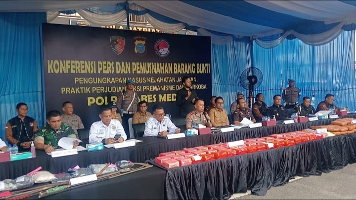Kapolrestabes Medan, Kombes Pol Jean Calvijn Simanjuntak didampingi Walikota Medan, Rico Tri Putra Bayu Waas, Senin (13/4/2026) menjelaskan, dalam pelaksanaan Ops Pekat Toba 2026, pengungkapan kasus oleh Polrestabes Medan naik 24 persen. Dengan total kasus yang diungkap sebanyak 119 kasus terdiri dari, 23 kasus kejahatan jalanan, 35 kasus perjudian, 58 kasus narkoba dan 3 kasus premanisme.