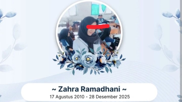 Melalui sebuah pengumuman, sekolah menuliskan: “Innalillahi wa Inna Ilaihi Raji’un. Keluarga Besar SMPN 2 Tapian Dolok turut berduka cita sedalam-dalamnya atas berpulangnya ke Rahmatullah ananda: Zahra Ramadhani (Kelas IX-5). Lahir: 17 Agustus 2010, Berpulang: 28 Desember 2025. Semoga almarhumah husnul khotimah…” tulisnya.