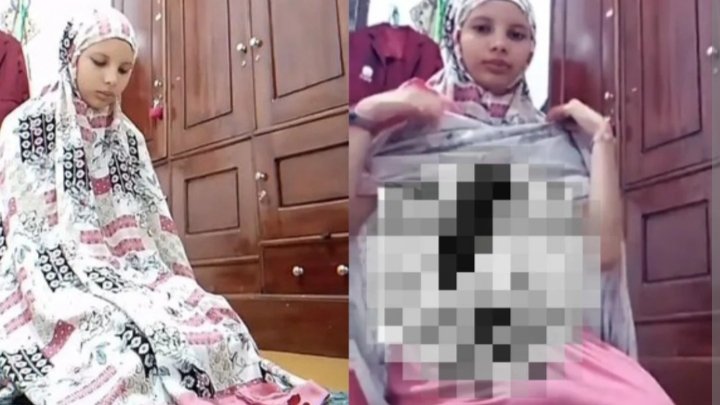 Potongan yang beredar hanya menampilkan seorang perempuan mengenakan mukena berwarna pink dalam durasi singkat tanpa penjelasan detail kejadian.