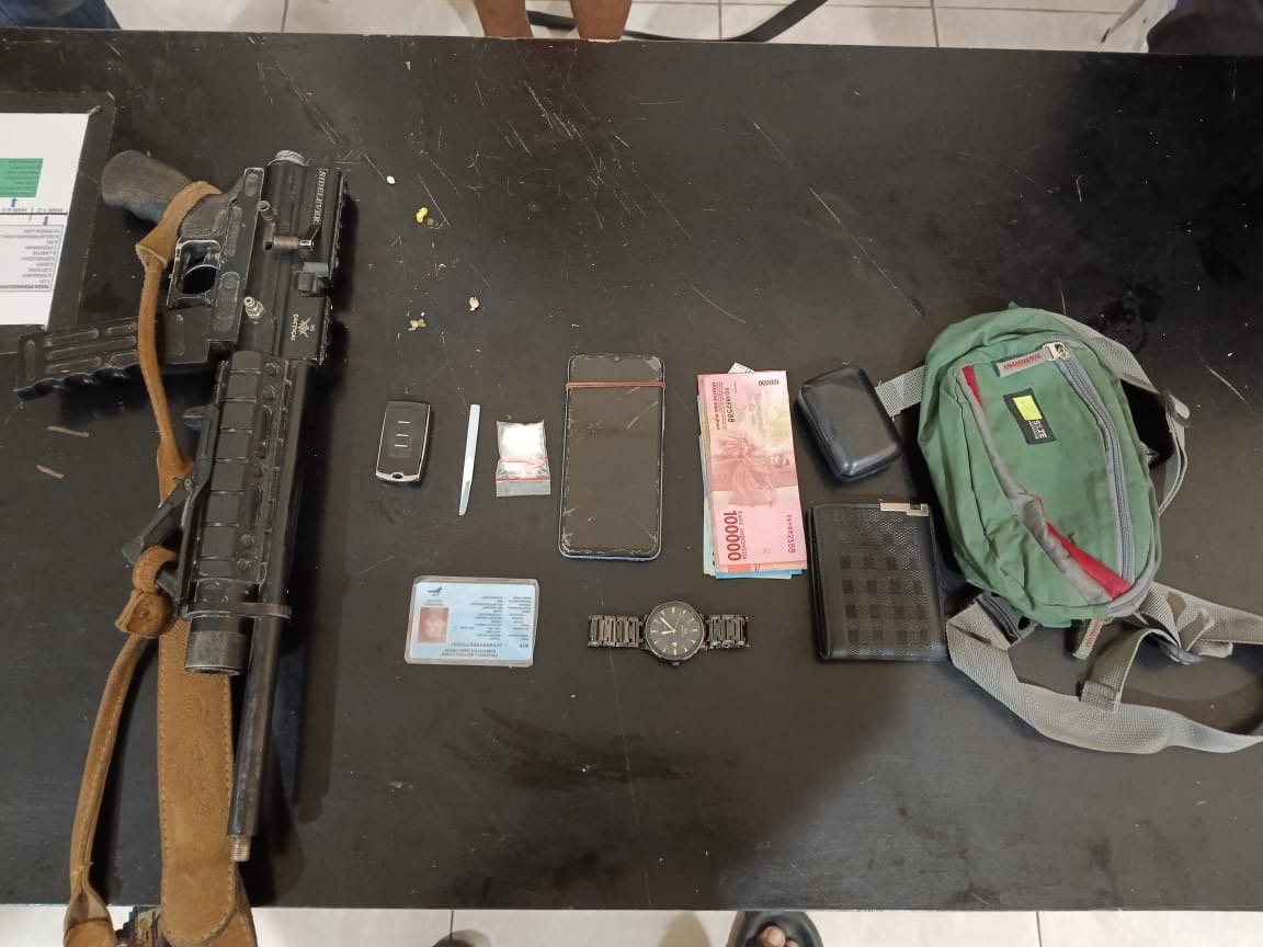 Dalam pengungkapan ini, petugas menemukan barang bukti sabu sebanyak 13 paket kecil dengan berat bruto 2,60 gram dan juga satu pucuk senjata angin merek Selesever.