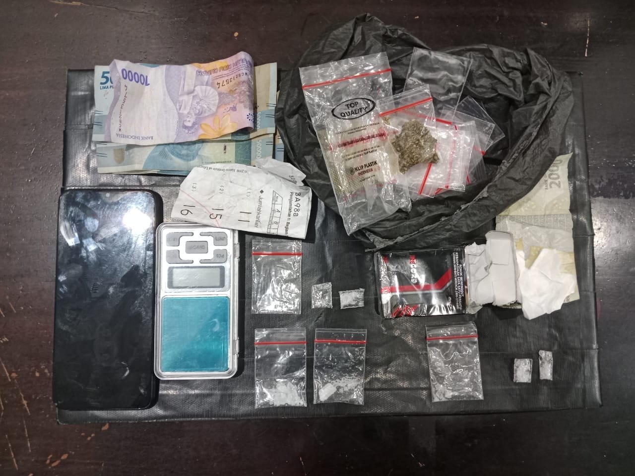 Saat digeledah, dari kantong celana SS ditemukan sebuah kotak rokok hitam berisi sabu seberat 0,05 gram. Penggeledahan lebih lanjut di rumahnya mengungkap lebih banyak barang bukti, termasuk beberapa bungkus plastik klip berisi sabu dengan total berat 1,05 gram, ganja 0,10 gram, timbangan digital, serta uang tunai Rp210 ribu. SS mengakui barang haram itu miliknya dan menyebut bahwa ia mendapatkannya dari seorang bandar berinisial J melalui kurir bernama R di Rantau Utara, Kabupaten Labuhan Batu.