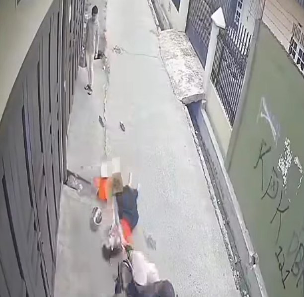Ketika mendekati pintu, tiba-tiba dua pelaku muncul menaiki sepeda motor. Pelaku yang di boncengan mengenakan jaket hoodie putih langsung menarik tas korban.