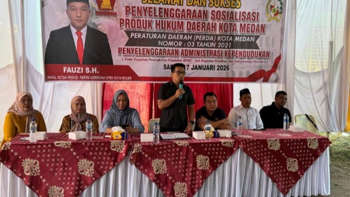MEDAN (HARIANSTAR.COM) – Tindakan responsif ditunjukkan Wakil Ketua Fraksi Gerindra DPRD Kota Medan, Fauzi, saat menggelar Sosper Nomor: 3 Tahun 2021 tentang Penyelenggaraan Adminduk di Jalan Mahkamah, Kelurahan Mesjid, Kecamatan Medan Kota, Sabtu (17/1/2026).