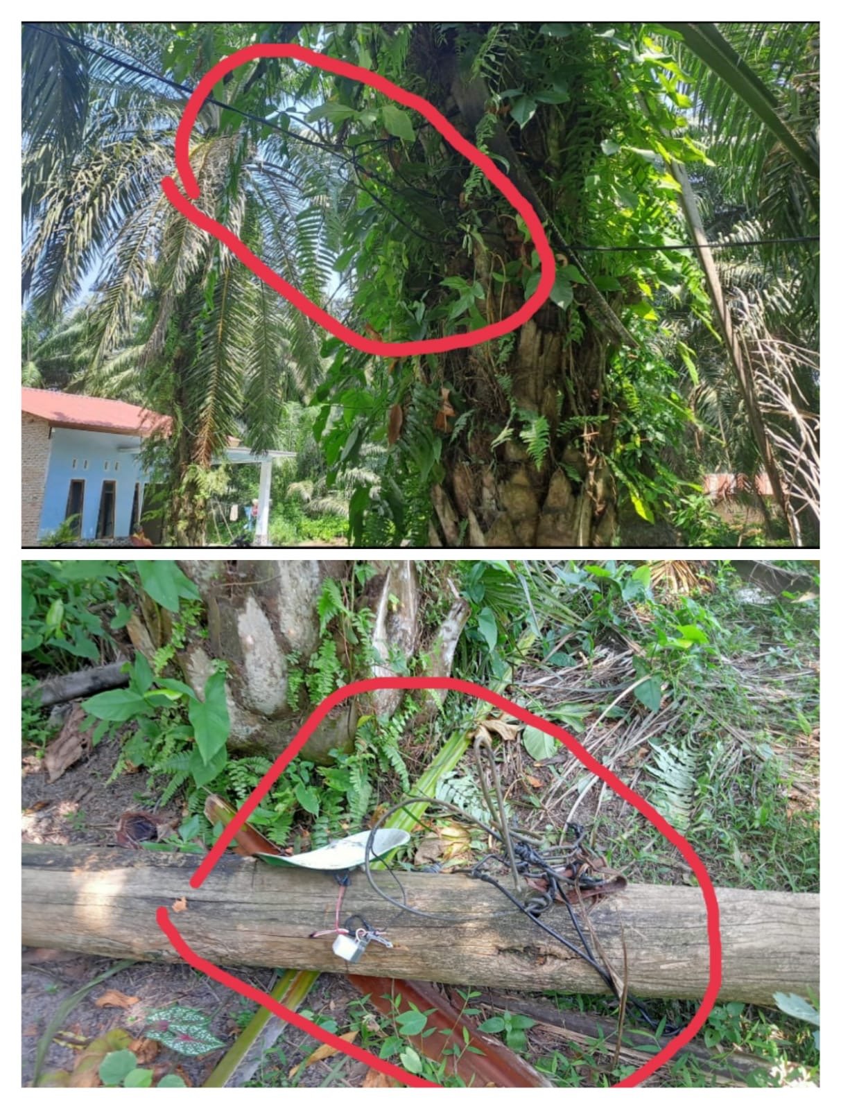 Pasalnya, tiang listrik kayu yang tumbang di dusun tersebut tidak diganti dengan tiang baru. Sebagai gantinya, pihak PLN justru mengikat jaringan listrik ke batang pohon sawit milik warga.