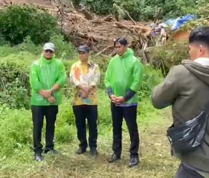 KARO (HARIANSTAR.COM)– Pasangan Calon Bupati (Cabup) Tino Mimana Sinuraya dan Onasis Sitepu (TOSS) meninjau bantuan yang mereka berikan untuk evakuasi korban longsor di Desa Doulu (Semangat Gunung), Kecamatan Berastagi, Kabupaten Karo.