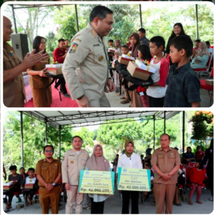 Kegiatan ini, pemberian bantuan sosial ini, merupakan agenda rutin kita setiap tahun, ini semua kita anggarkan untuk kepentingan kalian anak-anakku sekalian.