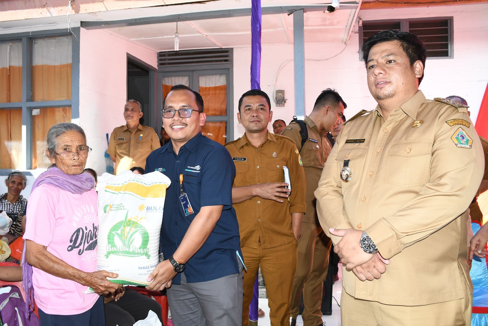 Launching penyerahan secara simbolis bantuan beras kepada Keluarga Penerima Manfaat (KPM) dari 3 (tiga) desa di Pangururan, yakni Desa Sait Nihuta, Lumban Pinggol dan Parlondut, Senin (6/2/2024)