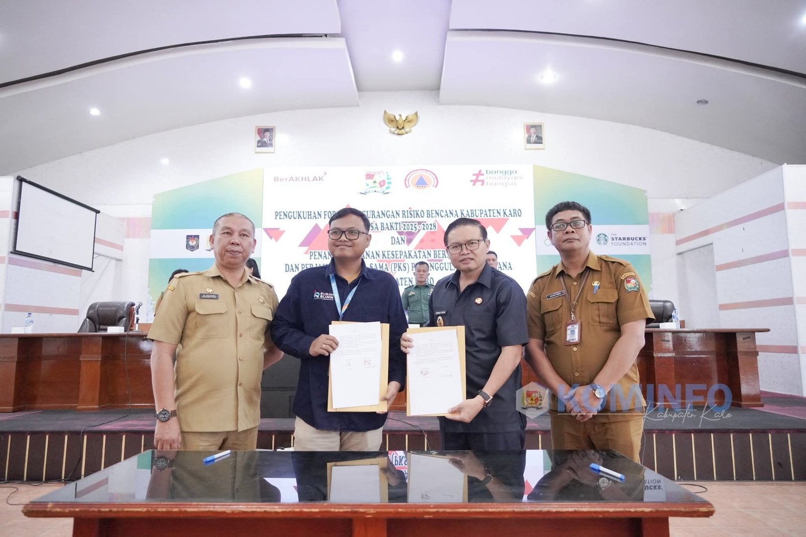 KARO (HARIANSTAR.COM) – Dalam rangka memperkuat upaya penanggulangan bencana serta mendukung pembangunan daerah yang berkelanjutan, Pemerintah Kabupaten Karo melalui Badan Penanggulangan Bencana Daerah (BPBD) Kabupaten Karo teken MoU dan kukuhkan Forum Pengurangan Risiko Bencana (PRB) di Aula Kantor Bupati Karo pada Selasa, (11/11/2025).