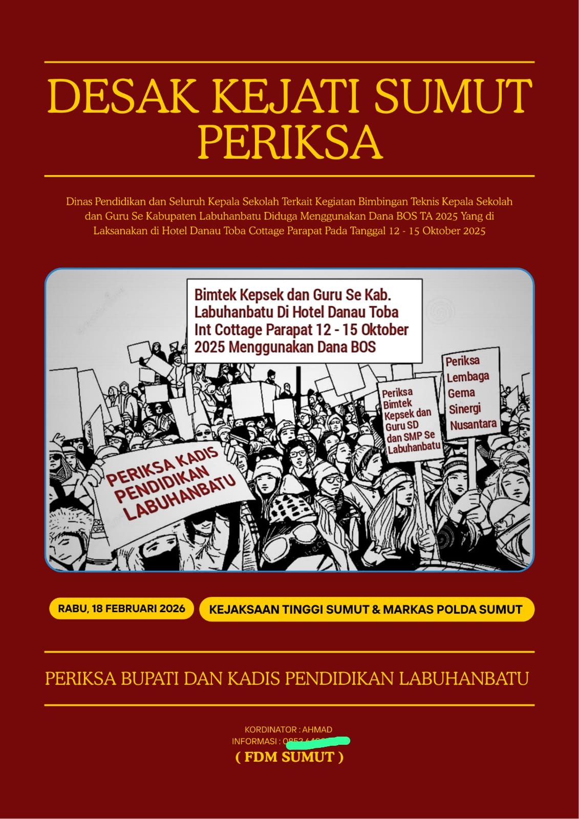 Koordinator FDM Sumut, Ahmad, dalam keterangannya pada 14 Februari 2026 menyampaikan bahwa kegiatan bimtek yang diikuti hampir seluruh kepala sekolah tingkat SD dan SMP di Labuhanbatu itu diduga menelan anggaran cukup besar karena digelar di hotel berbintang.