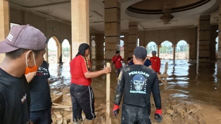 Selama hampir satu bulan penuh, puluhan personel Damkarmat diterjunkan untuk membersihkan sisa material banjir yang melumpuhkan berbagai fasilitas umum dan permukiman warga.