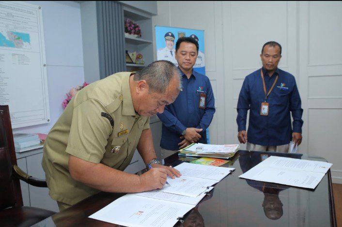 KISARAN (HARIANSTAR.COM) – Pemerintah Kabupaten Asahan menandatangani Nota Kesepahaman (MoU) dengan Badan Pusat Statistik (BPS) Kabupaten Asahan terkait kerja sama pemutakhiran Data Tunggal Sistem Ekonomi Nasional (DTSEN). Penandatanganan berlangsung di Ruang Kerja Rumah Dinas Bupati Asahan dan disaksikan oleh Kepala Dinas Kominfo Kabupaten Asahan, Sekretaris Bapperida, serta jajaran BPS Asahan. Kolaborasi ini menjadi langkah nyata dalam memperkuat sistem data daerah yang akurat, terintegrasi, dan berkelanjutan.