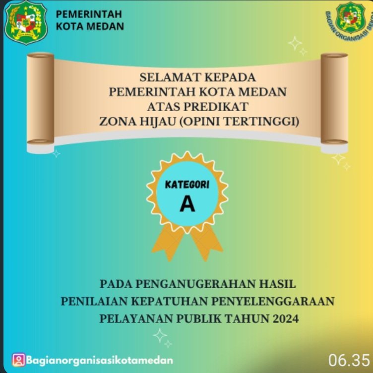 Kepala Bagian Organisasi Setda Kota Medan, Viza Fandhana saat di konfirmasi membenarkan hal itu. Dirinya mengatakan, ini merupakan prestasi yang patut dibanggakan sebab tahun lalu Pemko Medan hanya memproleh Predikat Zona Kuning dengan kategori C.