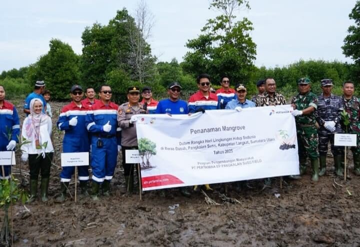 Langkah pelestarian lingkungan juga dilakukan dengan penanaman pohon bersama di area Mangrove Beras Basah, Kecamatan Pangkalan Susu. Sebanyak 2500 mangrove ditanam di area tersebut untuk mencegah abrasi dan mendukung ekosistem karbon biru. Secara simbolis, penanaman pohon dilakukan oleh manajemen Pertamina EP Pangkalan Susu, HSSE PHR Zona 1, Forkompimcam Pangkalan Susu, DLH Langkat dan KPH Wilayah I Stabat. (Surya)