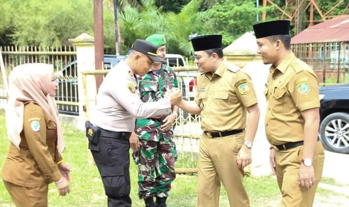 Kedatangan Pj. Bupati bersama rombongan di sambut Plt. Camat Huristak beserta pegawai dan staf.