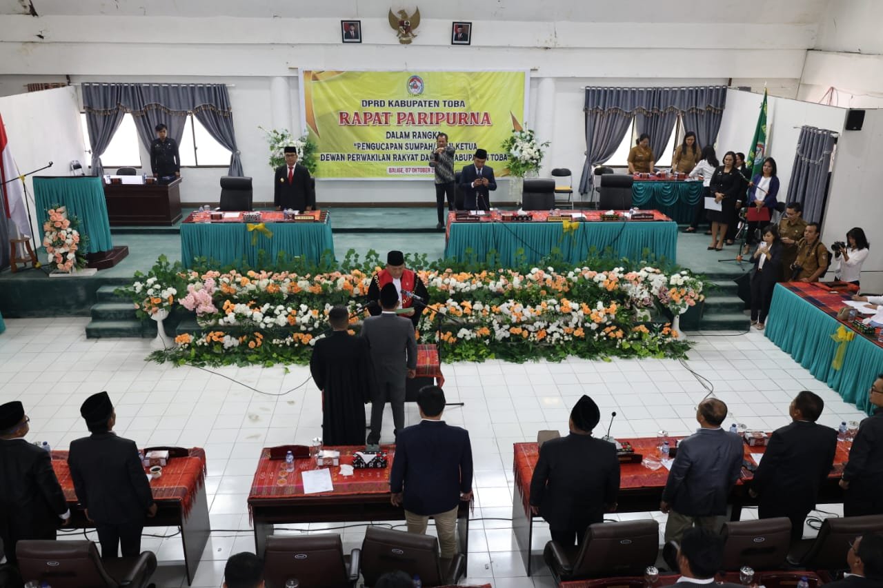 Dalam rapat paripurna tersebut, Tomson Manurung, ST secara resmi dilantik menjadi Ketua DPRD Toba, menggantikan posisi yang ditinggalkan Ketua sebelumnya, karena ikut mencalonkan diri sebagai Bupati Toba. Pengucapan sumpah/janji dipandu langsung oleh Ketua Pengadilan Negeri Balige, Dr. Makmur Pakpahan, dan dihadiri oleh sejumlah pejabat penting, termasuk Wakil Ketua DPRD, anggota DPRD, unsur Forum Koordinasi Pimpinan Daerah (Forkopimda), Sekretaris Daerah Kabupaten Toba, serta tokoh masyarakat dan agama.
