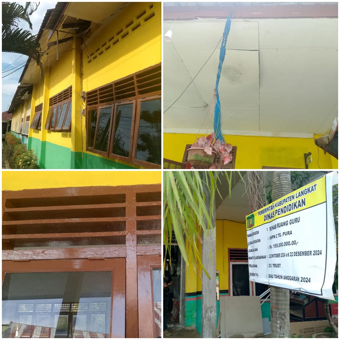 Sementara guru tata usaha yang enggan namanya di sebutkan saat ditanya mengenai bangunan sekolah di SMP Negeri 2 Tanjung Pura menilai kurang memuaskan. “Kerjaannya asal jadi saja, cat berselemak asal cat saja, tidak ada kerapihannya, ada dua ruang yang di kerjakan mereka.1 ruang kelas dan ruang tata usaha yang mana lantai di tinggikan sekiat 1/5 meter, terlihat timbunannya dari pasir bukan dari tanah timbun dan tangga ke lantai dasar yang kami mohon untuk di buat, kini tak dibuat mereka, asal -asalan kerja mereka,” bebernya.