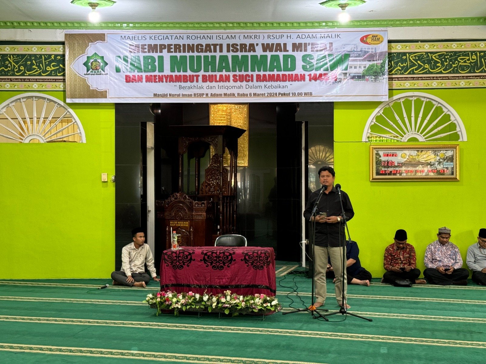 MEDAN (HARIANSTAR.COM) – Rumah Sakit Umum Pusat Haji Adam Malik (RS Adam Malik) menggelar acara peringatan Isra’ Mi’raj Nabi Muhammad SAW di Masjid Nurul Iman RS Adam Malik, Rabu (6/3/2024).