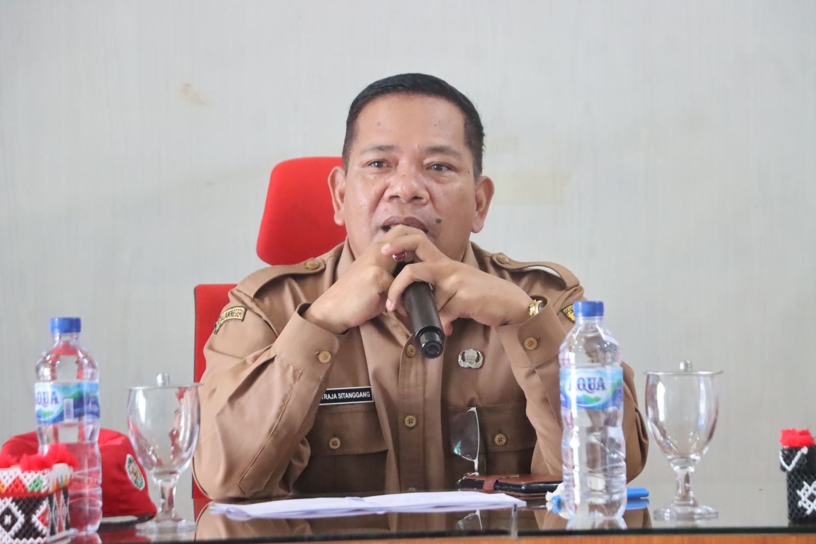 Bupati Samosir melalui Asisten II Hotraja Sitanggang menyampaikan selamat datang di Samosir, Negeri Indah Kepingan Surga, Titik Awal Peradaban Batak.