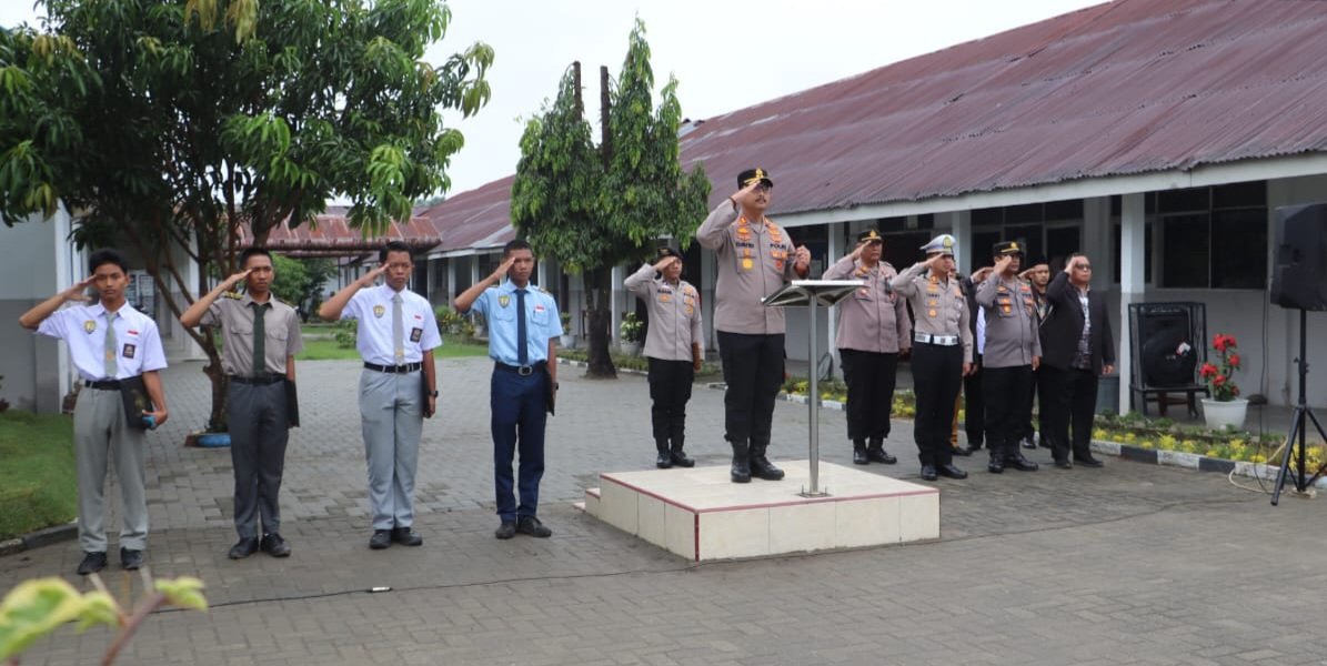 Kapolres Langkat AKBP David Triyo Prasojo memimpin langsung upacara bendera di Sekolah Yayasan Putra Jaya Jabal Rahmah, Kecamatan Stabat, Kabupaten Langka, Senin (15/9/2025).
