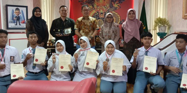 MEDAN, – Ketua DPRD Medan Wong Chun Sen Tarigan memberikan ucapan selamat kepada 7 Pelajar SMA Islam AL Ulum Terpadu atas prestasi mereka diajang World Young Investor Exhibition (WYIE) 2025 Kuala Lumpur Malaysia dengan meraih penghargaan medali perak atas karya inovatif di bidang bioteknologi kesehatan dengan judul Vellora Bath Soap Formulated With Bajakah Roots ( Spatolobus LittoralisLittoralis) and Roselle Flower (Hibiscus Sabdariffa) Extract yang merupakan sabun anti kanker.