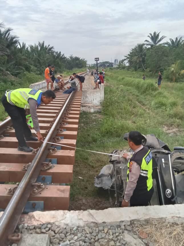 Sesampainya di tempat kejadian perkara (TKP), tepatnya di atas perlintasan rel, mobil ditabrak kereta api yang datang dari arah Tebing Tinggi menuju Medan.