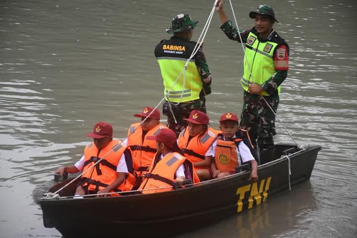 Melalui program Babinsa Sahabat Anak, personel TNI menyediakan perahu penyeberangan gratis yang aman bagi pelajar dan masyarakat umum. Kegiatan ini dilakukan secara rutin setiap hari guna memastikan akses warga tetap terbuka selama belum ada jembatan pengganti.