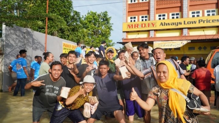 Adapun bantuan yang dikirim meliputi 5 ton beras, 500 papan telur, 1.000 paket makanan siap saji, air mineral, roti, serta berbagai makanan instan untuk memenuhi kebutuhan dasar warga yang masih bertahan di lokasi terdampak.