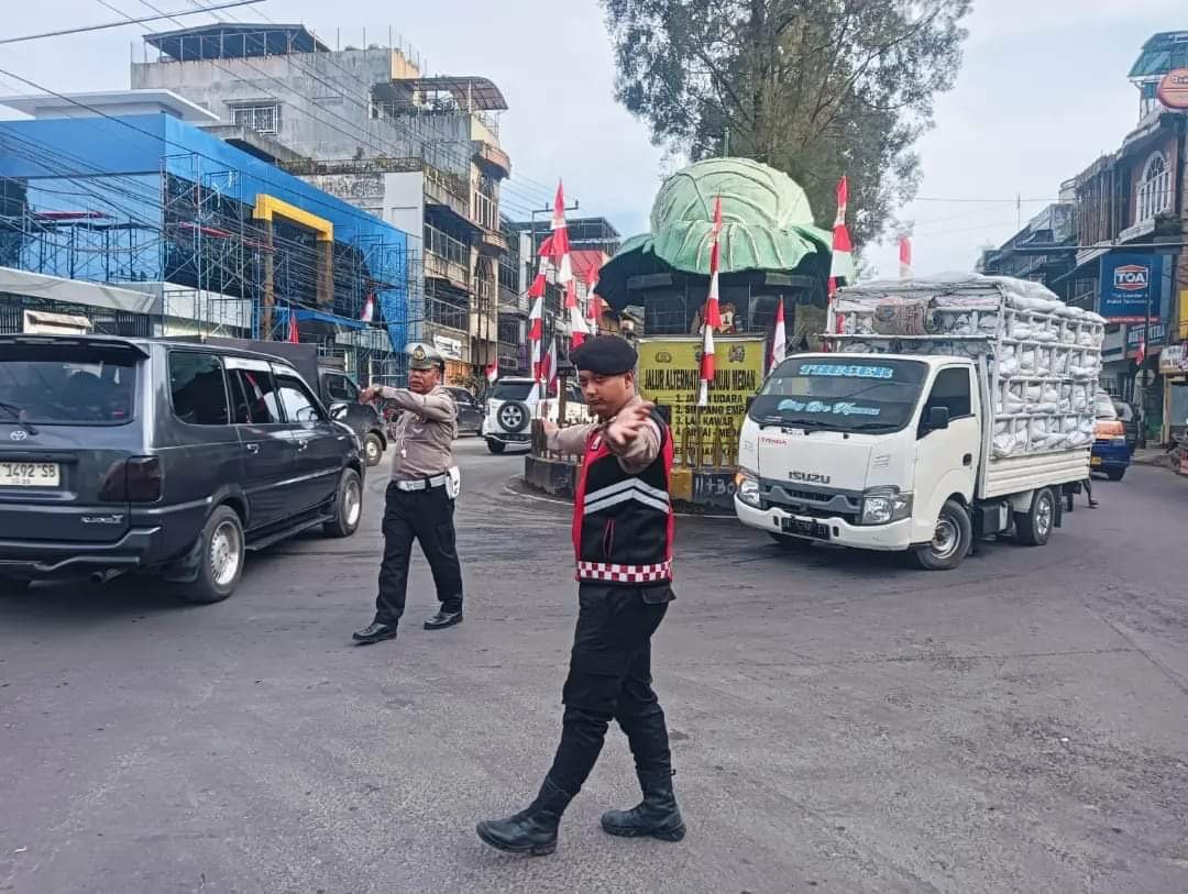 Kasat Samapta Polres Karo Laksanakan Pengaturan Lalu Lintas di Berastagi
