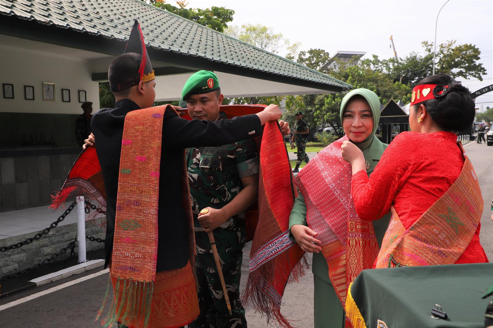 Sementara itu, Ketua Persit KCK Daerah I/BB menerima Ulos Sadum Simata, simbol semangat dan motivasi agar selalu bersuka cita dalam menjalani aktivitas sehari-hari.